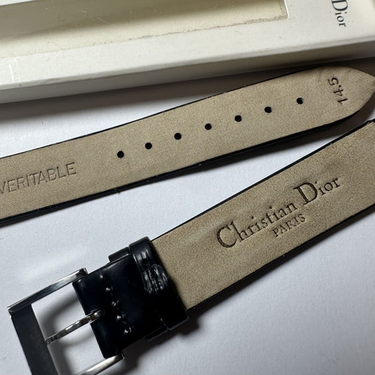 Christian Dior Paris Leather strap black with buckle and box 14,5mm