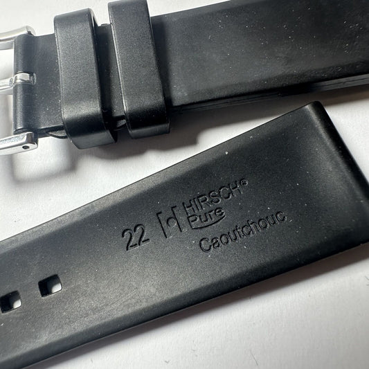 Hirsch black rubber strap and buckle used 22mm